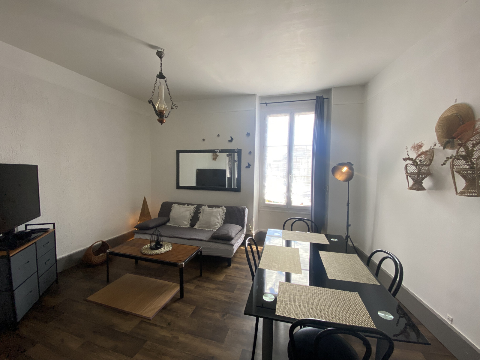 Bel appartement MEUBLÉ situé proche du Centre-ville de Troyes, au premier étage d'une petite copropriété, d'une superficie de 59m2. L'appartement comprend une entrée, une pièce de vie, une cuisine aménagée et équipée (hotte, plaque de cuisson, cafetière, réfrigérateur, mini four), deux chambres, une salle d'eau avec WC et trois placards. Stationnement facile dans la rue.