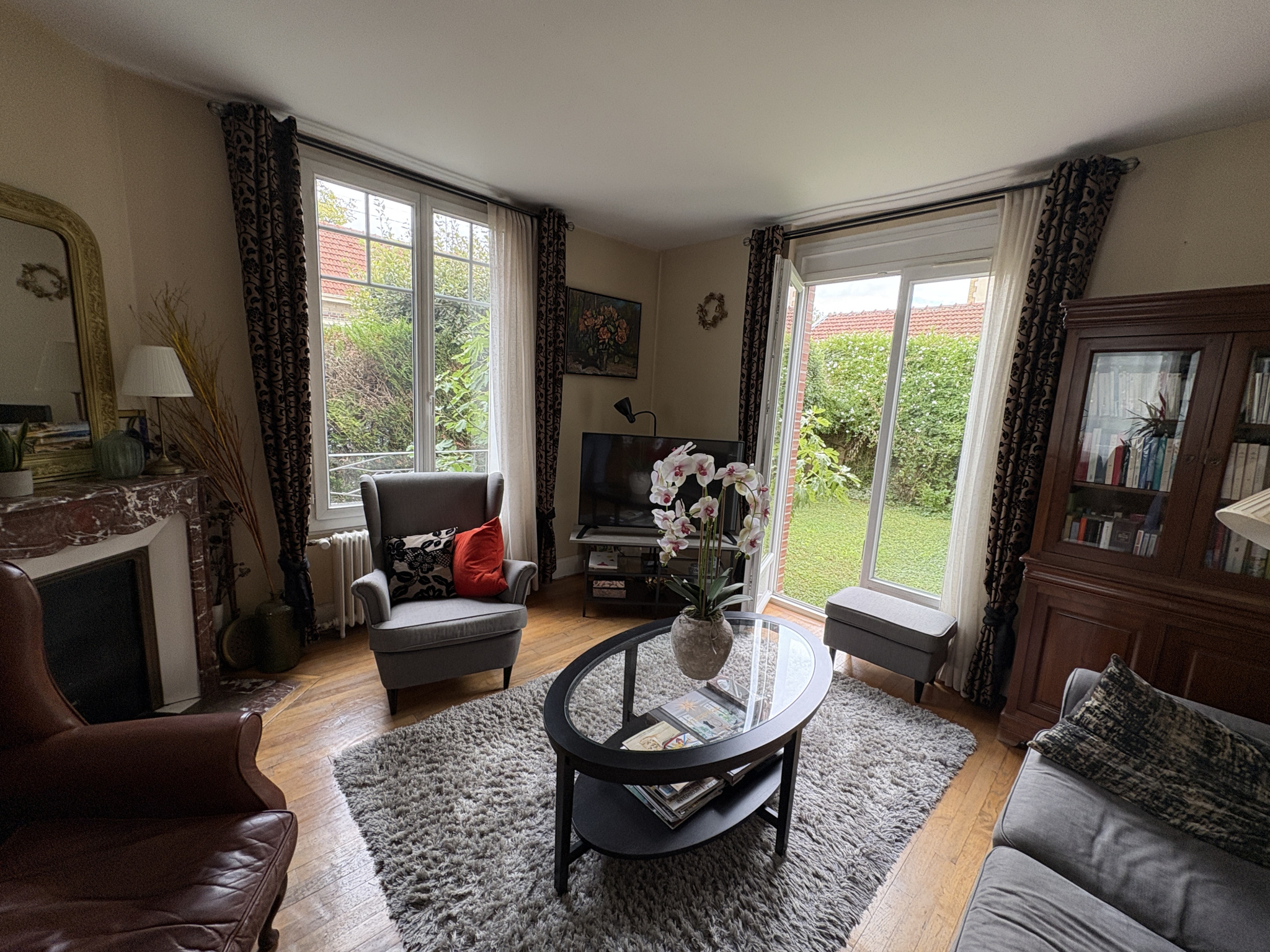 Au rez-de-chaussée, un lumineux salon-séjour de 35 m² vous accueille, avec deux magnifiques cheminées en marbre. Une cuisine aménagée et équipée complète l’espace, avec un accès direct au jardin et à la cave par un petit escalier. Un WC complète ce niveau.À l’étage, vous découvrirez trois belles chambres, dont une avec de grands placards intégrés, ainsi qu’une salle d’eau avec WC.