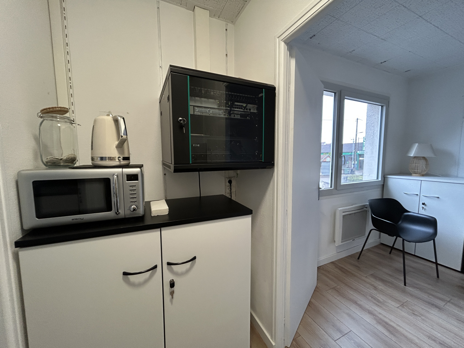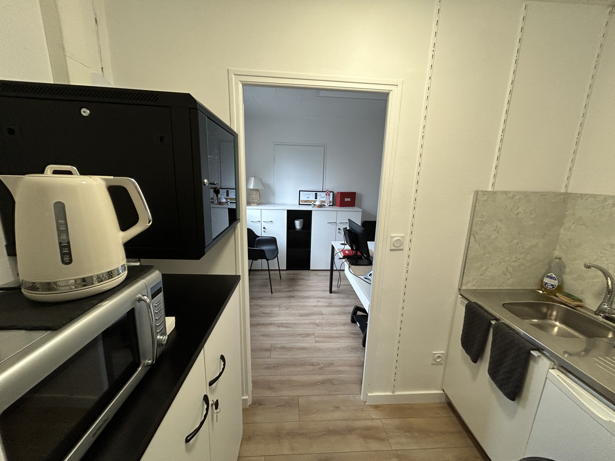 Local d'activité de 74m² situé sur un axe passant, proximité rocade. Celui-ci est composé de 3 espaces bureaux entre 9m² et 14m², un coin cuisine et sanitaires.