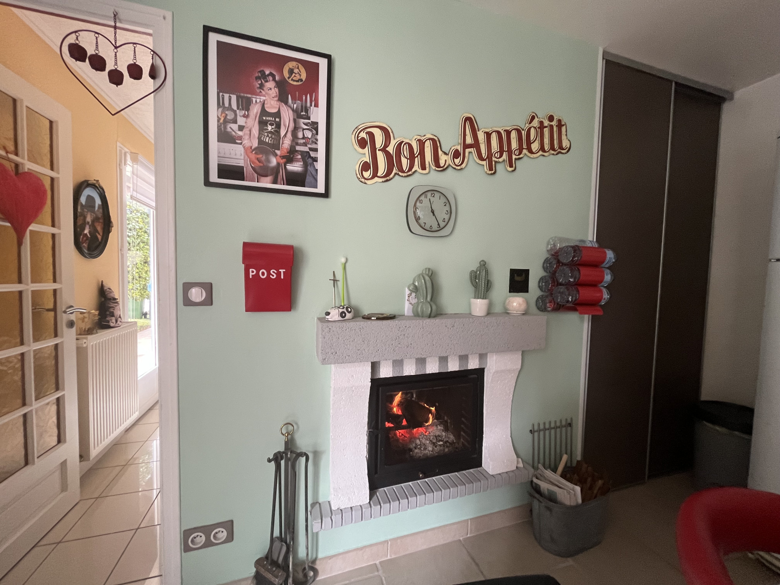Double vitrage bois et pvc, cheminée double foyer, chaudière gaz de ville avec production d'eau chaude, garage avec porte éléctrique, visiophone, clim reversible, cave voutée bien conçue pour conserver vos meilleurs vins, une dépendance, un cabanon de jardin.